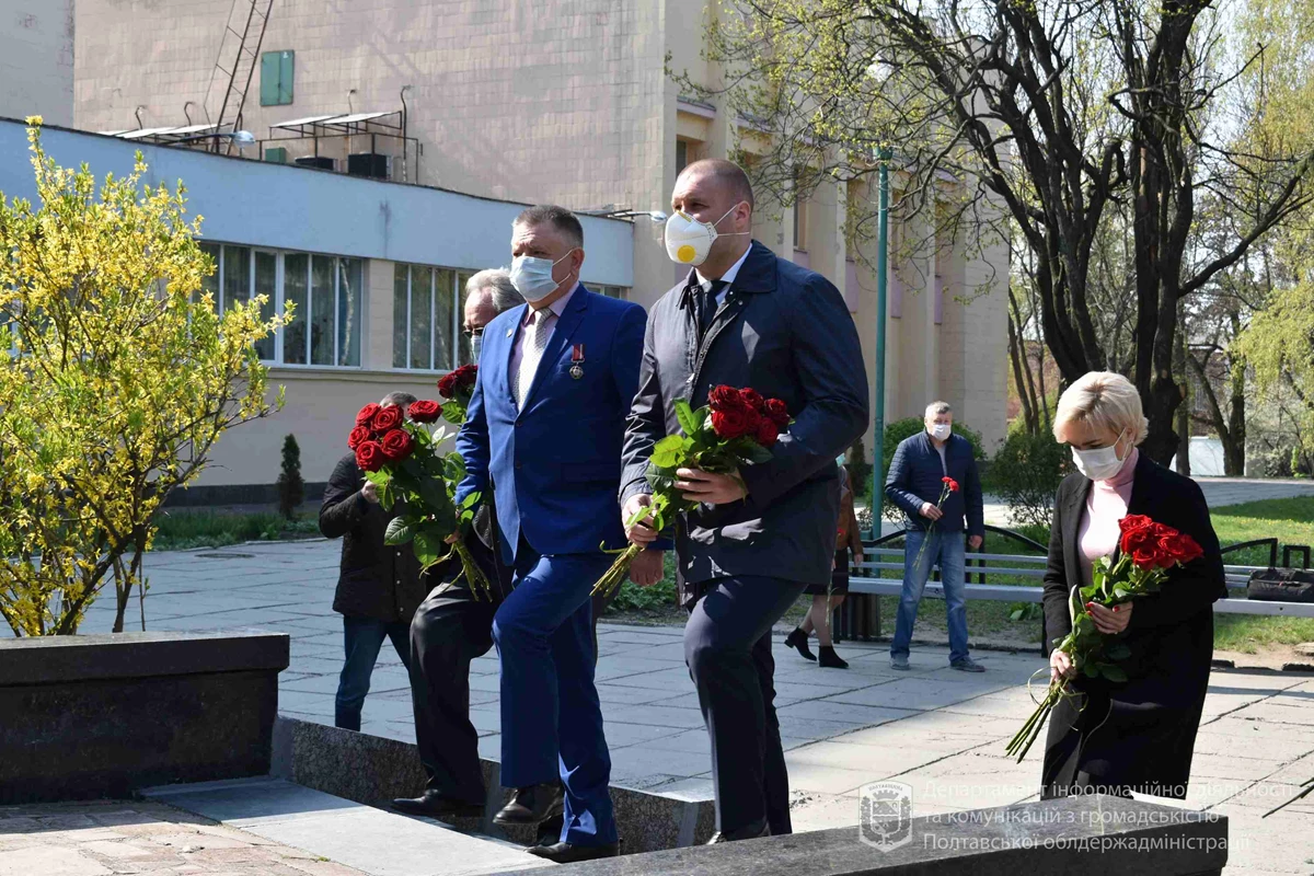 Голова облдержадміністрації Олег Синєгубов, заступник голови облдержадміністрації Катерина Рижеченко, голова обласного громадського об`єднання ветеранів та інвалідів в Полтавській області «Союз Чорнобиль України» Віктор Шкурпела та голова обласного громадського об’єднання «Фонд інвалідів Чорнобиля» Микола Дибін поклали квіти до пам`ятного знака «Жертвам Чорнобильської катастрофи».